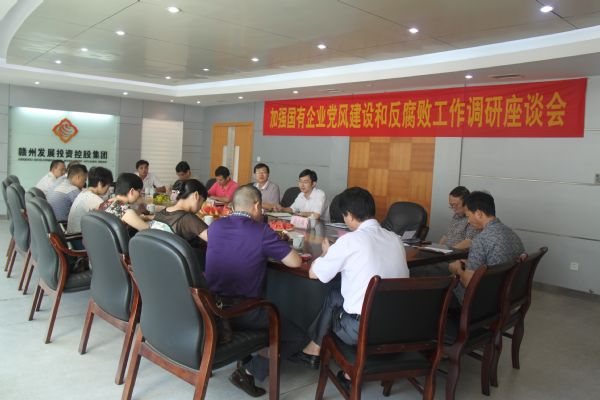 8月27日,市纪委、市国资委纪委加强国有企业党风建设和反腐败工作调研座谈会在我公司七楼会议室召开。市纪委副处级纪检员刘鸿懿出席会议。会议由市国资委纪委书记王志坚主持。市纪委廉政室副主任温志峰、市国资委监察室主任赖山珊、各出资监管企业分管领导以及市纪委、市国资委相关科室干部等20人参加了会议。
