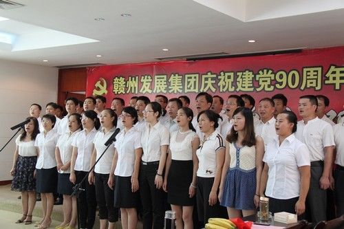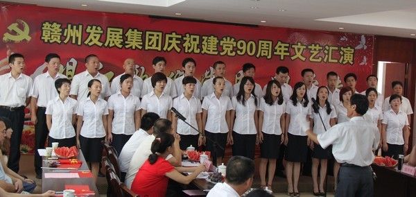 光辉九十年,盛世谱华章,儿女多奋进,颂歌献给党。7月8日,赣州发展投资控股集团庆祝建党九十周年文艺汇演在公司礼堂隆重举行,公司领导带领全体员工欢聚一堂,共同庆祝伟大的中国共产党90周年华诞!晚会以“唱红歌、颂党恩、跟党走”为主题、选取红色经典曲目,运用独唱、合唱、配乐诗朗诵等艺术形式,重温了中国共产党九十年的光辉历程,热情讴歌了新中国建设取得的辉煌成就。