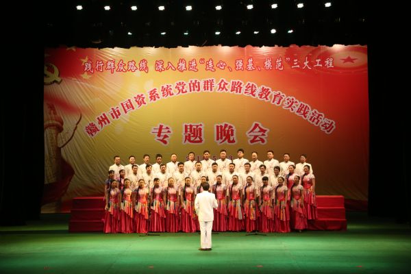 市国资系统党的群众路线教育实践活动专题晚会节目5月23日圆满闭幕。集团公司精心准备的大合唱《苏区精神永放光芒》、说唱情景剧《乡村群众颂党恩》在晚会上精彩亮相。
