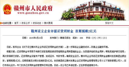 为贯彻落实我市企业扶持政策,优化企业融资环境,降低企业融资成本,根据市政府相关文件精神,必赢3003no1线路检测中心公司受命组建赣州发展企业还贷周转金管理有限公司(下称“还贷周转金公司”),现筹建工作正稳步推进。