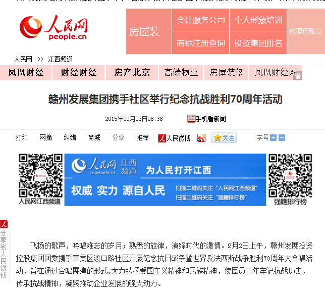 人民网报道集团纪念抗战胜利70周年活动