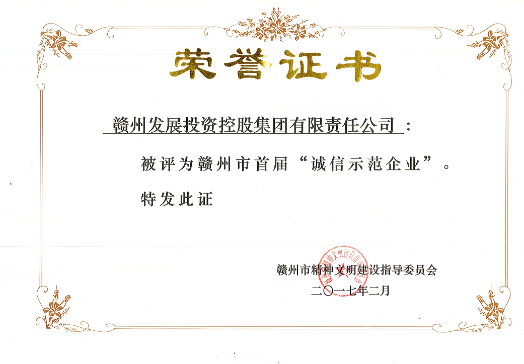集团荣获赣州市首届“诚信示范企业”荣誉称号