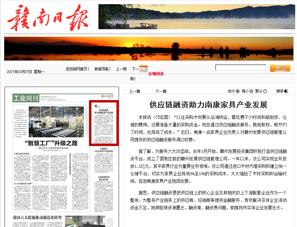 《赣南日报》:供应链融资助力南康家具产业发展