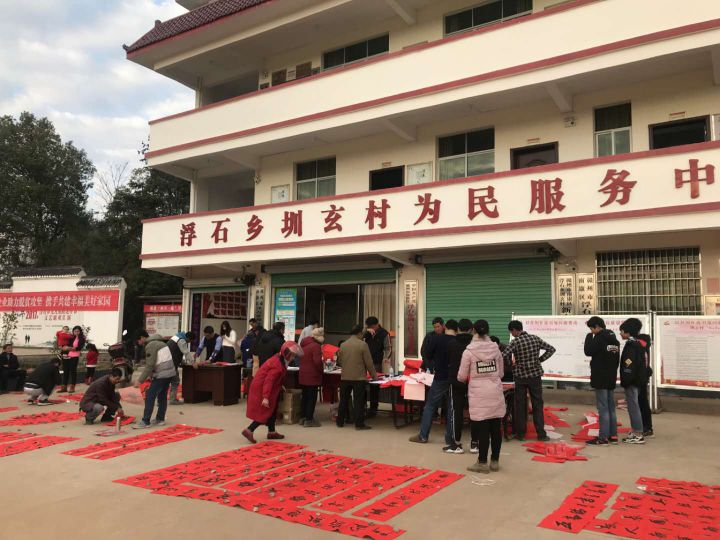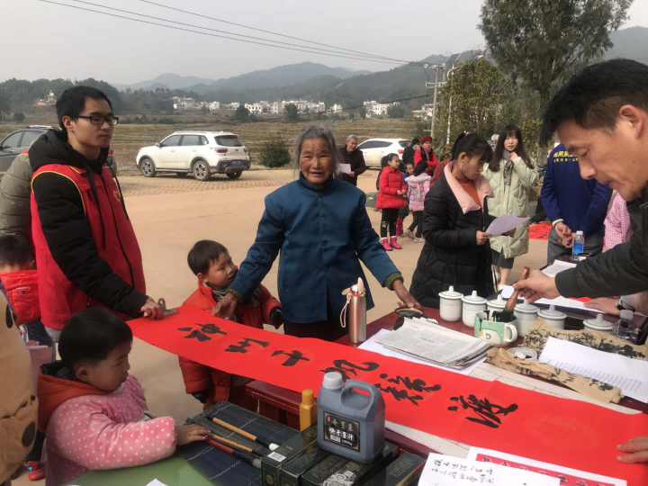 “你们写的春联真好,明年还来吗?”一位老奶奶拉着集团书法志愿者的手说到。2019年1月24日,集团团委、工会组织书法志愿者赴南康区浮石乡圳玄村开展“写春联,送祝福”活动。