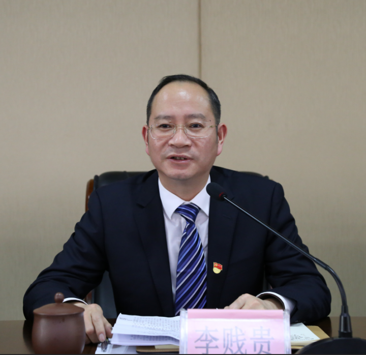 (图为集团党委书记、董事长李贱贵讲话)