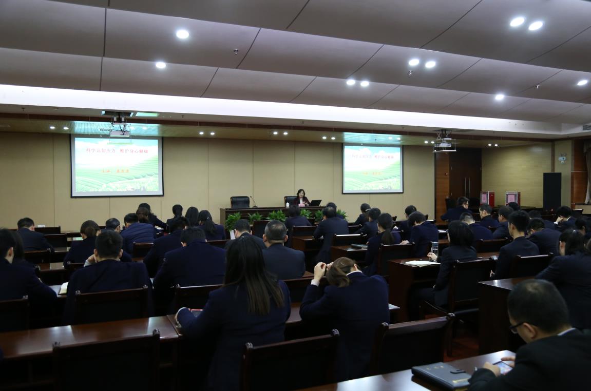 秦教授通过生动的案例、风趣的语言介绍了压力及其特点、压力的影响因素及对健康的影响,指导大家通过倾诉、加强沟通交流、改变对事物的认知角度等方式方法面对压力、化解压力。在轻松的氛围中,大家对心理健康知识有了更客观深入的认识,学会了以阳光的心态和健康的生活方式快乐工作、快乐学习、快乐生活。