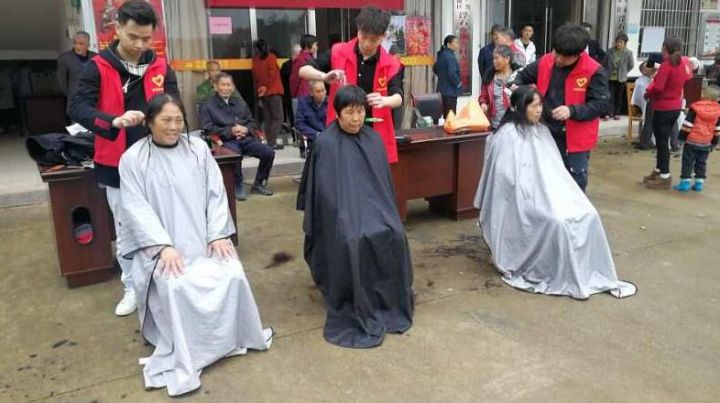 现场邀请的4名理发师志愿者按照顺序依次为老人们理发,围罩衣、打湿头发、设计发型、修剪头发......好不热闹。截止目前,免费理发人数达80余人。活动的开展不仅为村民送去了夏日清凉,更加拉近了与村民的关系,为后续开展扶贫工作打下了良好的群众基础。