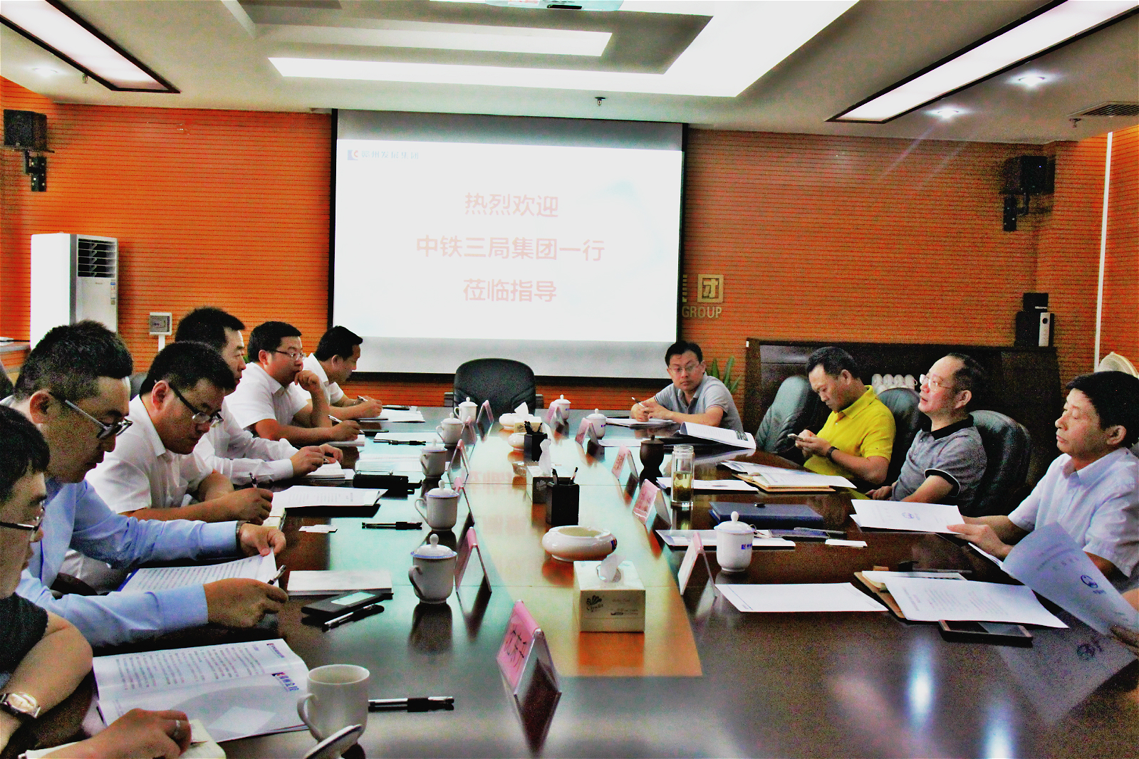 近日,中铁三局集团副总经理李建光一行来集团洽谈合作。集团董事长李贱贵,集团副总经理刘斌等出席洽谈。