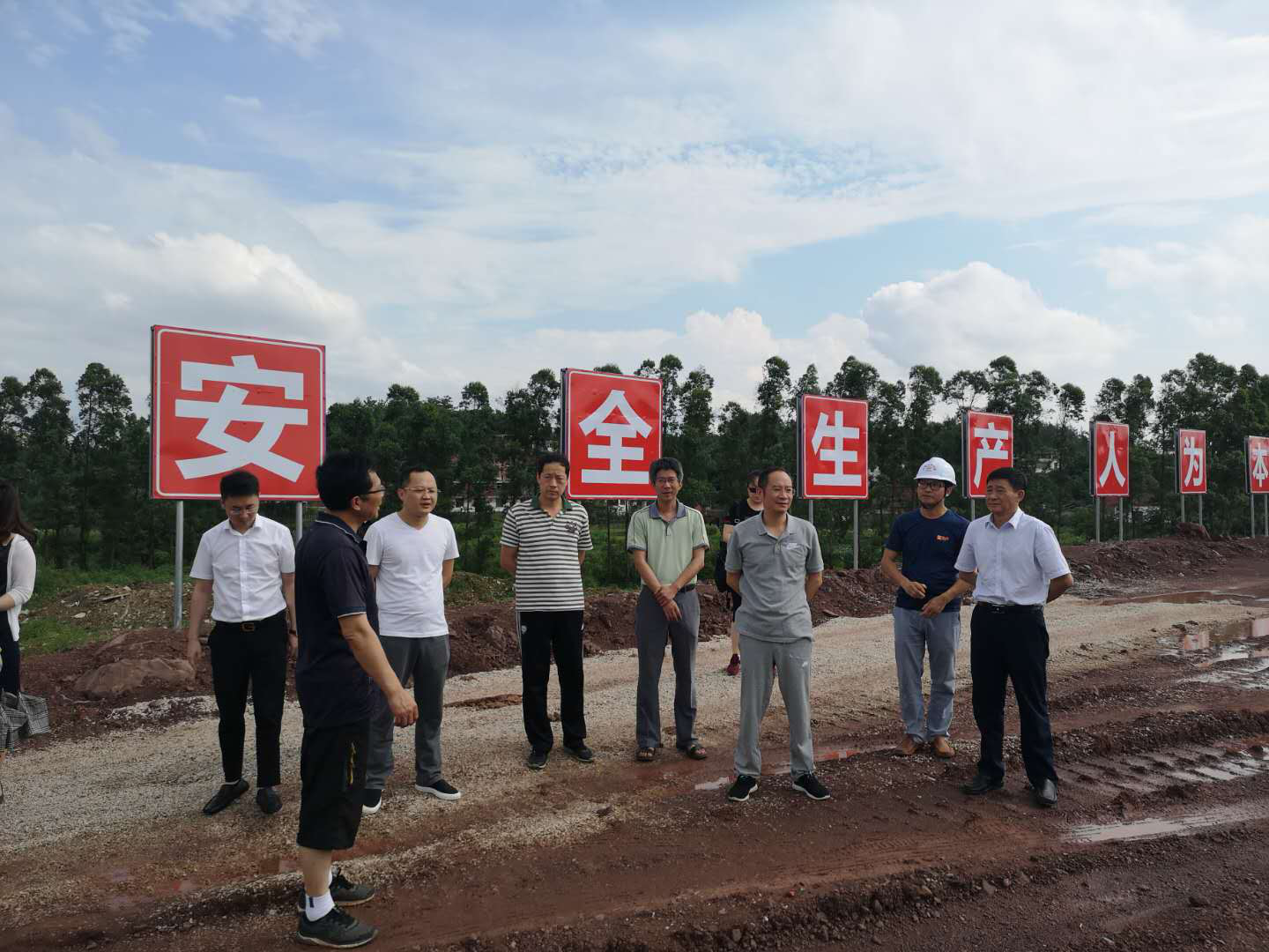5月26日下午,集团党委书记、董事长李贱贵,党委副书记、总经理杨晓斌,党委委员、副总经理刘斌等一行来到G105赣州中心城区改线工程项目实地进行现场办公。