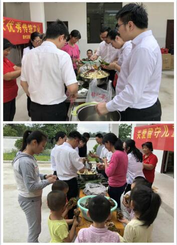 志愿者一行来到圳玄村幼儿园。慰问活动中,为了让留守儿童感受到儿童节的欢乐及端午节来临之际的祝福和关怀,集团志愿者向幼儿园小朋友赠送了精心挑选的节日愿望礼物,孩子们收到礼物后开心地手舞足蹈,虽然父母不在身边,但是通过这份礼物,他们感受到了节日的氛围,体会到了社会的温暖。随后,孩子们跟着圳玄村的村民及志愿者一起亲自动手,学习包粽子,一折叶、二盛料、三压实、四包、五扎绳、红豆粽、蜜枣粽。大家都沉浸在自己动手的欢乐中,度过了快乐的儿童节。