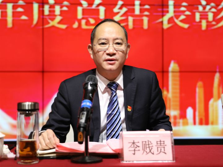 集团党委书记、董事长李贱贵作题为《 统一思想 凝心聚力以高质量的党建推动集团高质量转型发展》讲话。