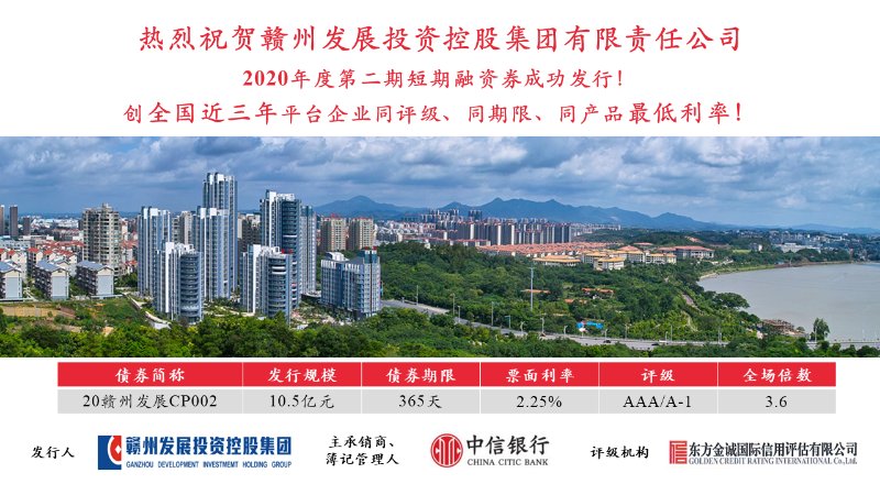 今年以来,集团认真贯彻落实有效应对疫情稳定经济增长“省20条”、“市30条”政策措施,抢抓政策窗口期,按照“一债一策”的原则,明确时间表和路线图,扎实推进短融、超短融、基金债、增强型双创债以及公司债等债券发行工作,并于2020年3月20日顺利发行了第一期2.5亿元规模的疫情防控专项债。此次短期融资债券的成功发行,进一步提升了赣州在资本市场的影响力,为赣州建设革命老区高质量发展示范区提供了强有力的金融支持。