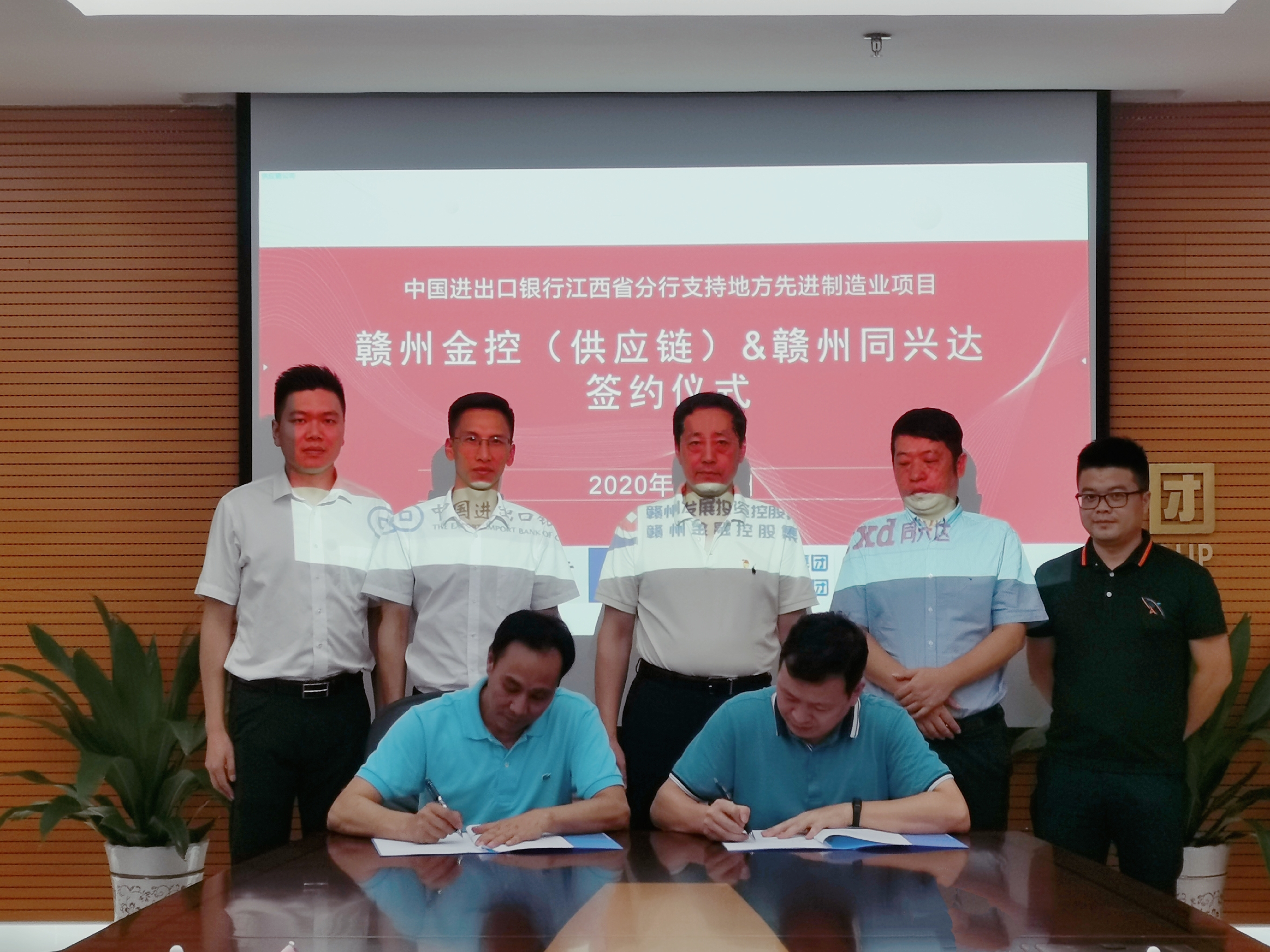7月9日下午,供应链公司与赣州同兴达电子科技有限公司(简称“赣州同兴达”)举行《战略合作框架协议》签约仪式,供应链公司为企业提供首期3亿元代理采购额度,这是赣州金控集团承接中国进出口银行江西分行直达实体纾困资金在全省首单落地的项目。