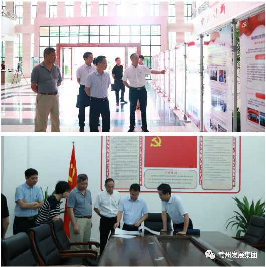 杨有谷一行观看了集团党建工作宣传展板,参观了党支部党员活动室,听取了相关情况介绍,并与集团党委书记、董事长李贱贵,党委副书记、总经理杨晓斌,党委副书记肖春雷及相关部门负责同志进行了座谈。