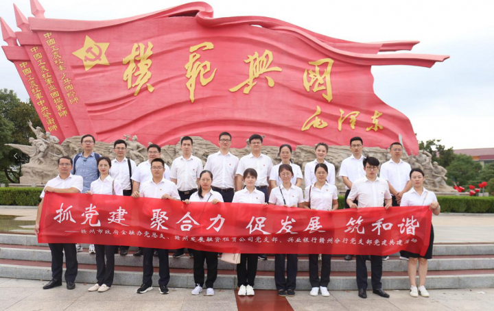 近日,必赢3003no1线路检测中心旗下融资租赁公司党支部、赣州市政府金融办党总支、兴业银行赣州分行党支部一同赴兴国县开展“抓党建 聚合力 促发展 筑和谐”为主题的党建共建活动。