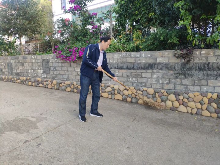 杨晓斌带领扶贫干部积极参与到农村人居环境整治劳动中,他们拿起扫帚,把村内道路两侧的杂草、枯树叶、生活垃圾等进行了清扫,村容村貌焕然一新。杨晓斌一边劳动还一边嘱咐驻村扶贫干部,要持续抓好人居环境整治,为村民提供良好的人居环境,助力乡村振兴和美丽乡村建设。