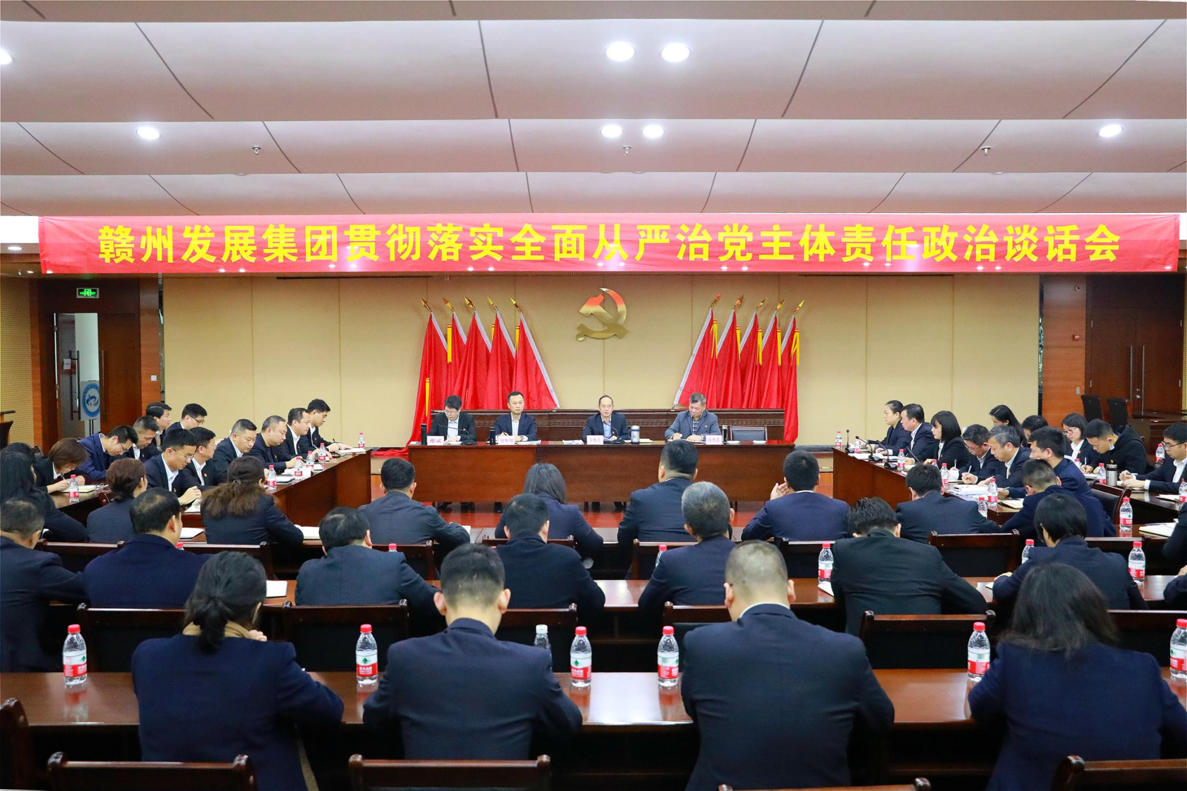 为加强对“一把手”和领导班子的监督,持续推进集团全面从严治党工作向纵深发展,4月19日,必赢3003no1线路检测中心党委组织召开贯彻落实全面从严治党主体责任集体政治谈话会。会议由集团党委委员、纪委书记谢斌主持,集团党委书记、董事长李贱贵出席并讲话,集团在家班子成员、各党支部书记、各部门、各子公司主要责任人,集团其他中层以上干部共有50余人参加会议。