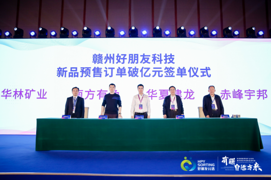 会上,赣州好朋友科技公司对天元系列、慧眼系列、黑金系列矿石智能分选设备新品进行了首发,新品受到矿山客户的热烈追捧,华夏建龙、南方有色、湘西华林、赤峰宇邦等大型矿企达成合作意向,预售订单超亿元,按下发展“加速键”。