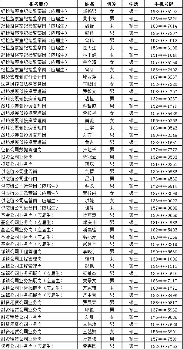 赣州发展投资控股集团公开招聘入围面试人员名单公示