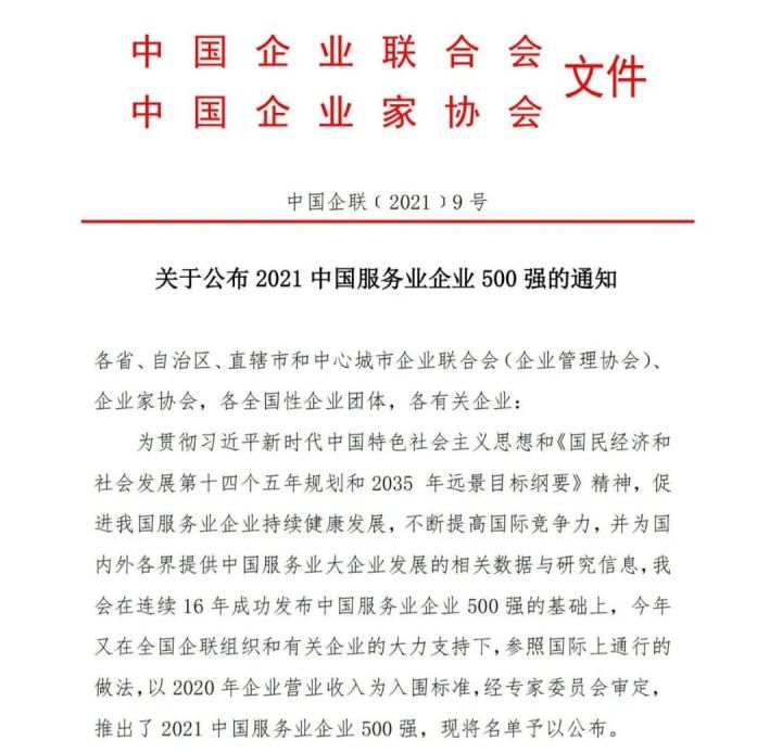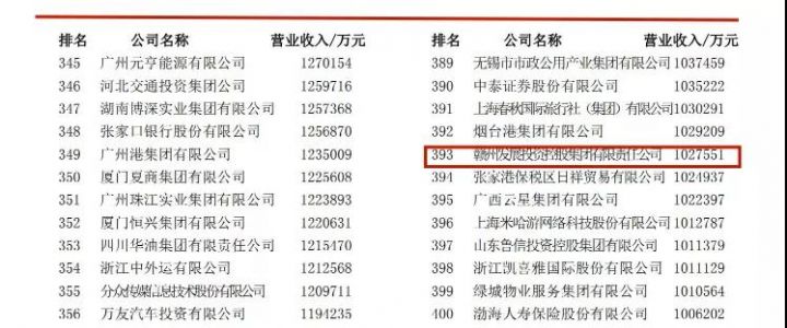 9月25日,中国企业联合会、中国企业家协会在中国500强企业高峰论坛上发布了2021中国企业500强、中国制造业企业500强、中国服务业企业500强、中国100大跨国公司、中国战略性新兴产业领军100强、中国大企业创新100强企业名单。赣州发展投资控股集团有限公司入围中国服务业企业500强第393位。