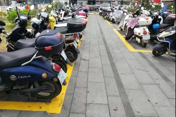 ▲图为集团协调相关部门,在中创国际城附近路段新划设的两轮车停放区。