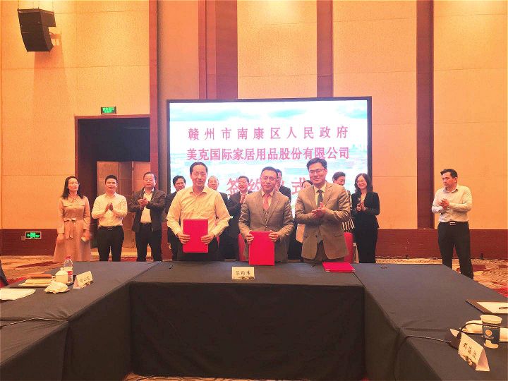 ▲图为2020年4月29日,南康区人民政府与美克家居签约仪式。