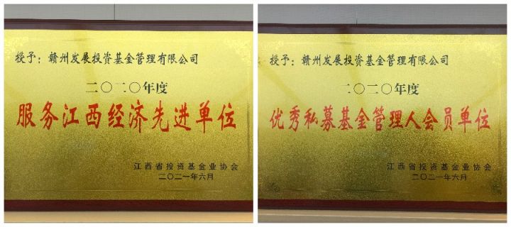 喜讯!必赢3003no1线路检测中心旗下基金公司荣获2020年度“服务江西经济先进单位”和“优秀私募基金管理人会员单位”荣誉称号