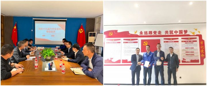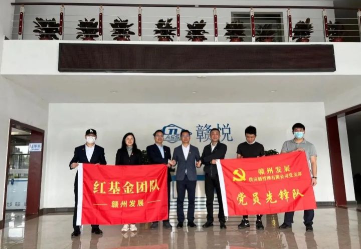 基金公司党支部及供应链公司党支部党员一行通过参观生产车间、座谈交流等形式了解赣悦新材公司近期业务动态、资金周转及产品创新等情况,并从分析当前形势入手,宣讲和解读了党的十九届六中全会精神,教育引导企业员工充分认识到党建工作对于破解企业发展难题的重要性。