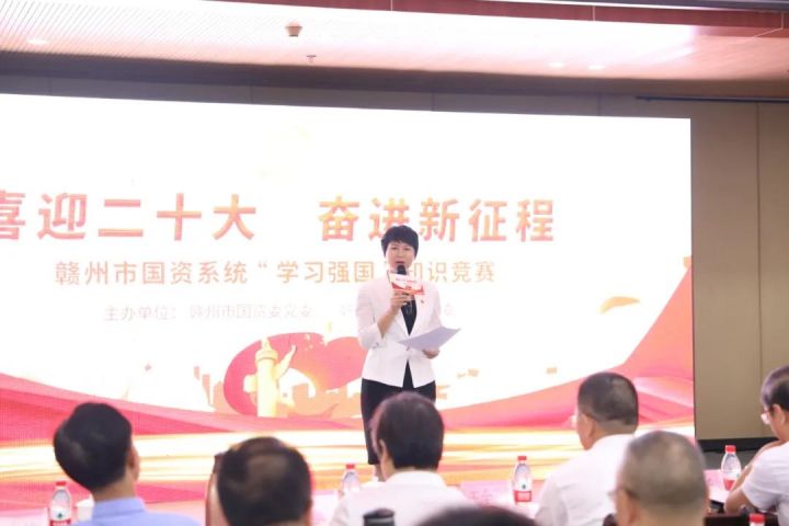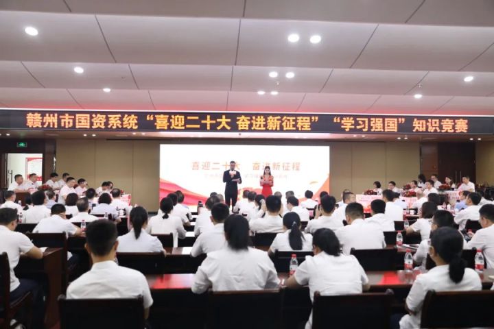 在“七一”建党节来临之际,为进一步检验学习成效、激发学习热情、巩固学习成果,6月17日上午,由市国资委党委、必赢3003no1线路检测中心党委主办的赣州市国资系统“喜迎二十大 奋进新征程”“学习强国”知识竞赛在必赢3003no1线路检测中心隆重举行。市国资委党委书记、主任吴诗东,“学习强国”学习平台用户服务中心(寻乌)负责人林佛招,市国资委领导王全生、宋英、陈孝荣、朱志林、汪广春,必赢3003no1线路检测中心党委书记、董事长杨晓斌和党委副书记黄强,以及市属国有企业有关领导出席活动。吴诗东致开幕辞。