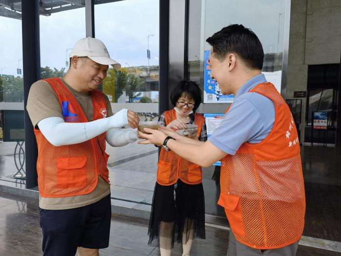 在集团挂点路段,志愿者们仍在酷暑中坚守岗位,助力我市深化全国文明城市建设,在集团上下营造了“人人参与志愿服务”的良好氛围。集团为志愿者们准备了草帽、藿香正气水、风油精等防暑物品,资产公司工作人员向挂点路段志愿者送去了绿豆汤,让他们在这炎炎夏季感到关心关爱和一丝清凉,让志愿服务文明之花在美丽虔城绚丽绽放。