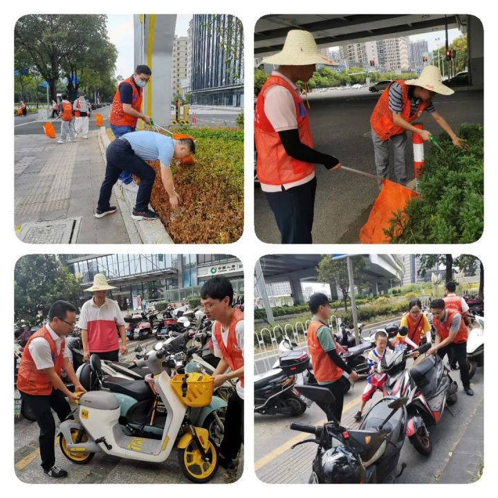 在黄强的带领下,突击队志愿者们干劲十足,大家发扬不怕苦、不怕累的精神,冒着高温酷暑,挥洒汗水在一线。志愿者们身着红马甲,拿着垃圾钳、环保袋等工具,对路段的人行道、绿化带、草坪、树围花坛等区域的卫生死角进行了全面仔细地清理,重点对烟头、纸屑、塑料袋等垃圾进行了清扫和捡拾。同时,及时劝导随意停放非机动车的行为,对乱停乱放二轮车逐一纠正、摆放整齐,努力营造安全、有序的交通秩序。