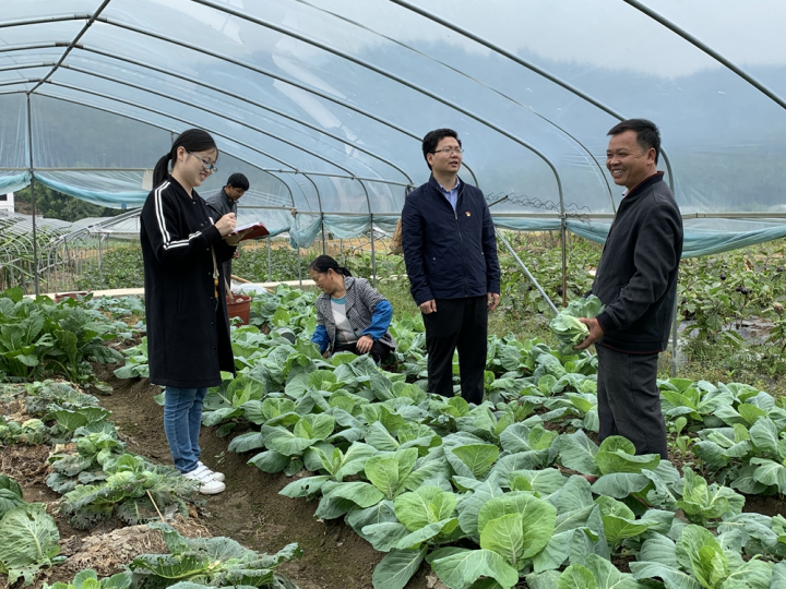 江西省各级纪检监察机关紧盯乡村振兴产业政策落实、项目建设、资金使用等重点领域开展监督检查,以强有力监督护航乡村振兴。图为近日,赣州市赣县区纪委监委干部在该区湖江镇中塘村蔬菜基地向菜农了解乡村振兴产业政策落实情况。杨斌 摄