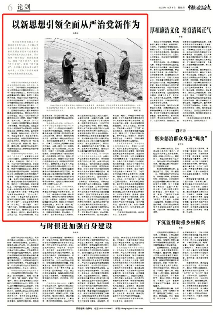2022年12月8日,中国纪检监察报刊发江西省委常委、省纪委书记、省监委主任马森述的署名文章《以新思想引领全面从严治党新作为》,现予以全文转载。