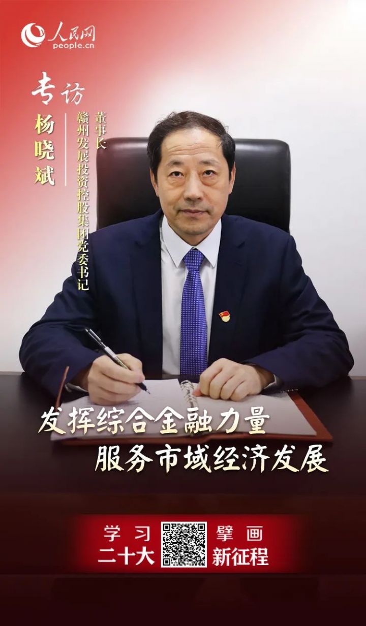 【编者按】为深入学习宣传贯彻党的二十大精神,把思想统一到党的二十大精神上来,把力量凝聚到党的二十大确定的各项任务上来,人民网江西频道联合江西省委网信办网络新闻传播和评论处推出“学习二十大,擘画新征程”系列访谈节目,聚焦江西各地各部门如何精心组织“学”,广泛深入“讲”,结合实际“干”,推动党的二十大精神落实到发展的各方面,以踔厉奋发、勇毅前行姿态奋进新征程。近日,赣州发展投资控股集团党委书记、董事长杨晓斌接受了人民网的专访,以下为访谈实录: