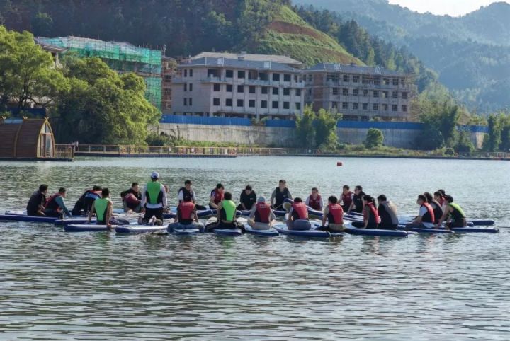 活动最后环节,开展了水上浆板团建项目,基地教练带领大家着重训练了水上安全救生能力和应急协调能力,大家通过学习水上浆板基本操控,锻炼了身体平衡性和反应敏捷性,活动氛围紧张而又热烈,团队默契得到进一步提升。