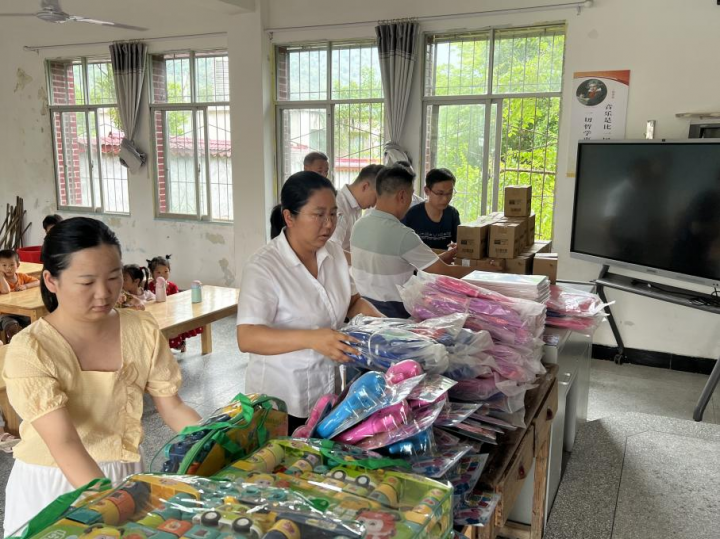 集团青年志愿者们来到麻州镇中心小学幼儿班,带来了事先收集并采购的22名留守儿童“微心愿”,有书包、绘画本、马克笔、贴纸、水杯、芭比娃娃、拼装车等志愿者们精挑细选的儿童节礼物,收到礼物的孩子们脸上洋溢着天真幸福的笑容。