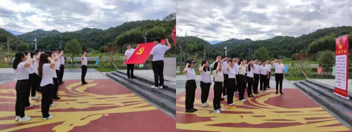 大家首先来到上犹县清湖红色教育基地,党员重温入党誓词,团员重温入团誓词,回顾入党、入团初心,强化身份意识、宗旨意识和责任意识。