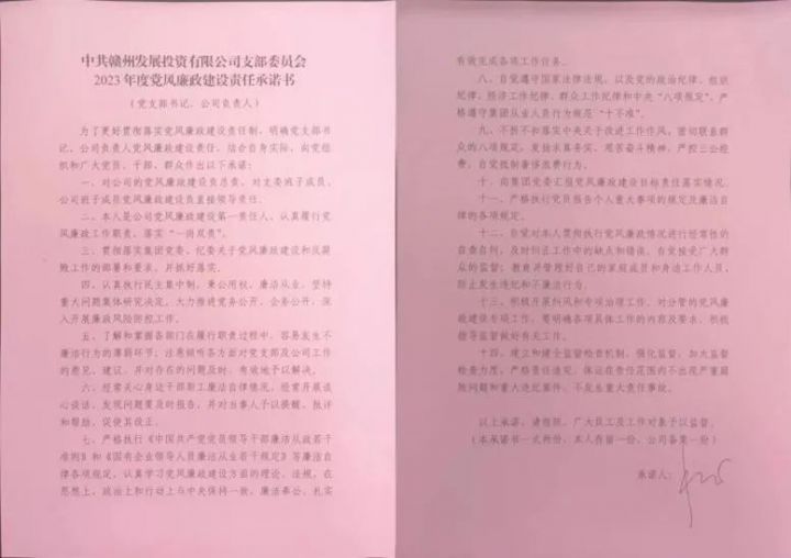 为完善廉洁风险防控体系,规范职工廉洁从业行为,营造崇廉尚廉的工作氛围,投资公司党支部坚持“把纪律挺在最前面”,支部书记严格履行全面从严治党第一责任人责任,其他支委班子成员履行“一岗双责”,抓好分管领域全面从严治党工作任务落实。支部组织公司全体党员干部职工签订《党风廉政建设责任书》《移风易俗承诺书》等并在支部廉政文化墙上公示,做到全员覆盖、人人参与,承诺恪守职业操守,树立高尚道德,使清廉意识真正转化为日常行为习惯,进一步增强身份意识,坚定理想信念,筑牢信仰之基,有效激发廉洁动能,营造风清气正的良好政治生态。