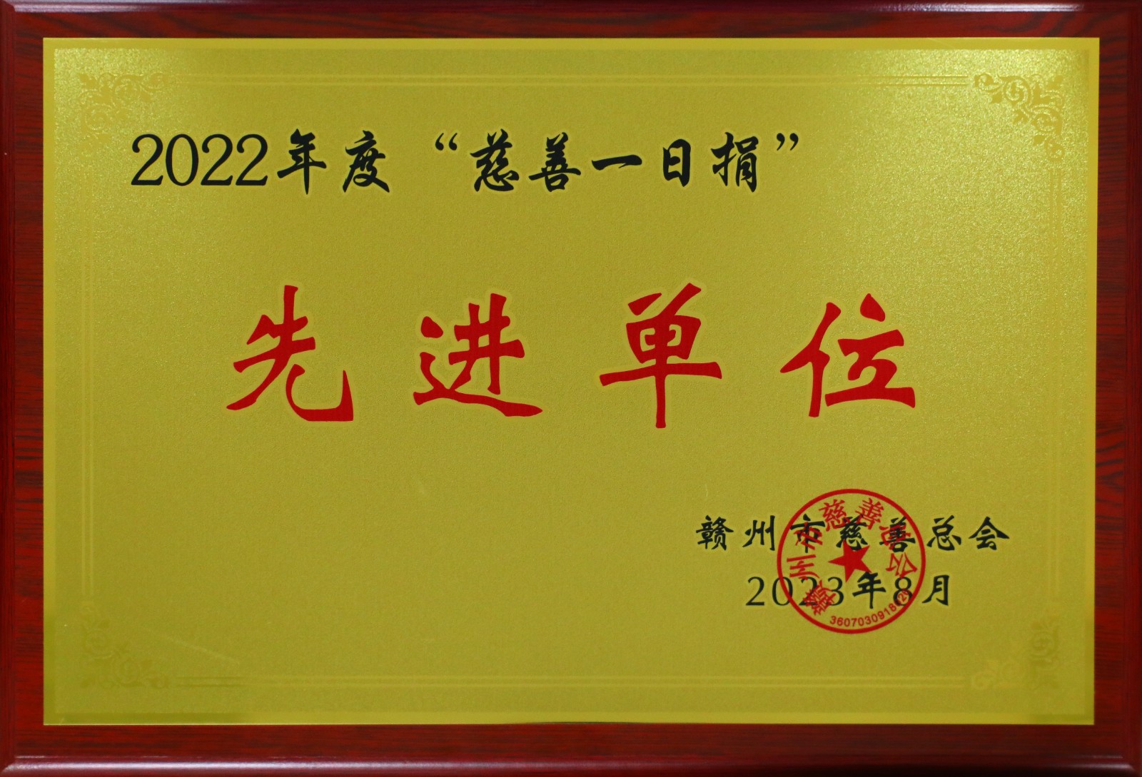 必赢3003no1线路检测中心荣获2022年度“慈善一日捐“活动”先进单位“荣誉称号