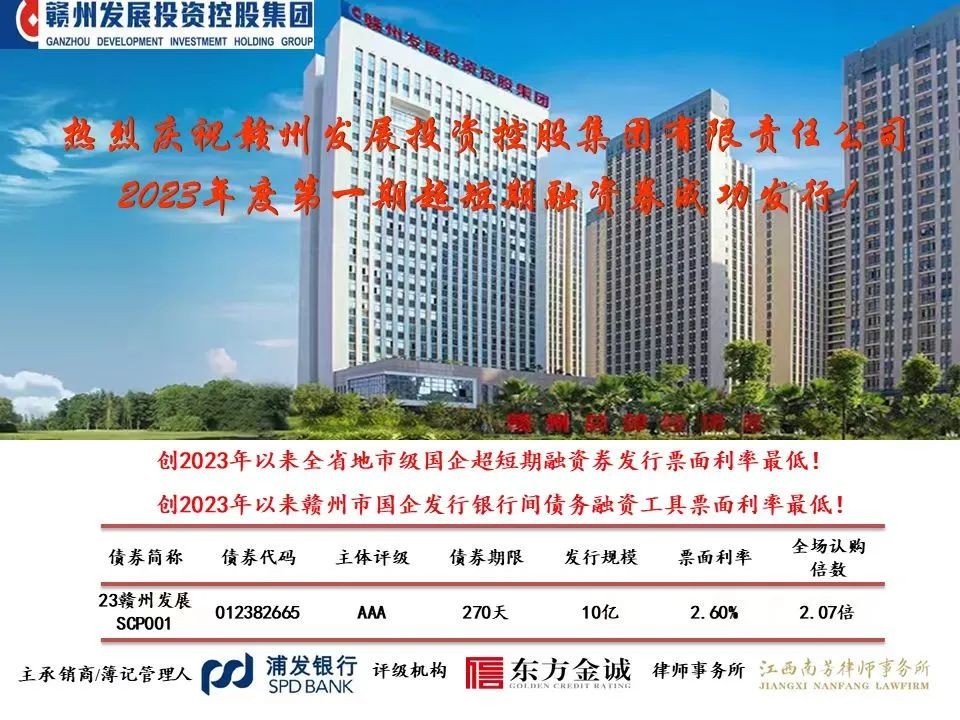 赣州发展投资控股集团成功发行2023年度第一期超短期融资债券