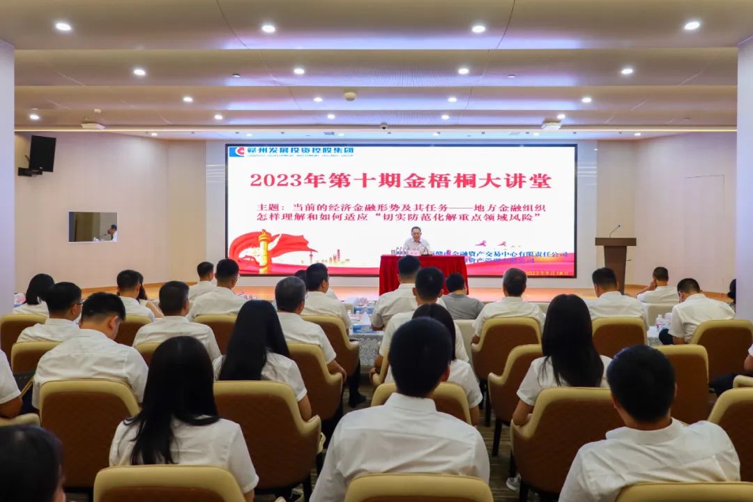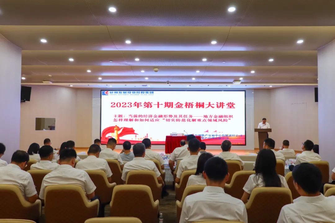 为进一步提高集团员工对当前经济金融形势的认识,增强企业风险隐患防范意识,9月18日,必赢3003no1线路检测中心举办2023年度“金梧桐”大讲堂第十期活动。集团党委书记、董事长杨晓斌出席活动,集团党委副书记、总经理梁敏辉主持活动,市金融办副主任朱雪林以及集团领导黄强、廖生兴、刘昭祥出席活动,市金融办相关科室负责人及集团各部门、各子公司相关人员共80余人参加。