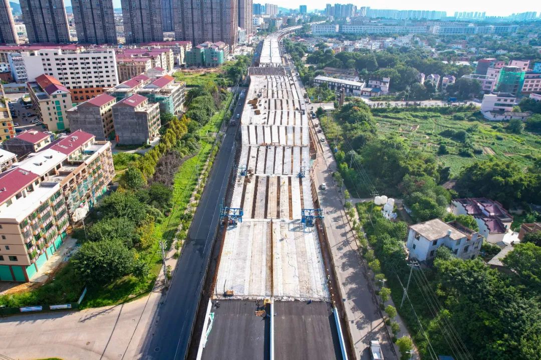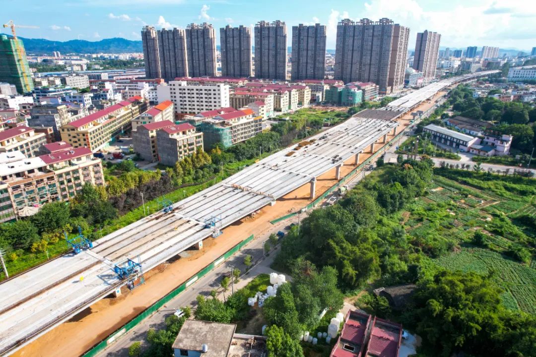 赣南大道快速路(龙岭西路-创胜路东侧段)项目高架主线箱梁架设全部完成