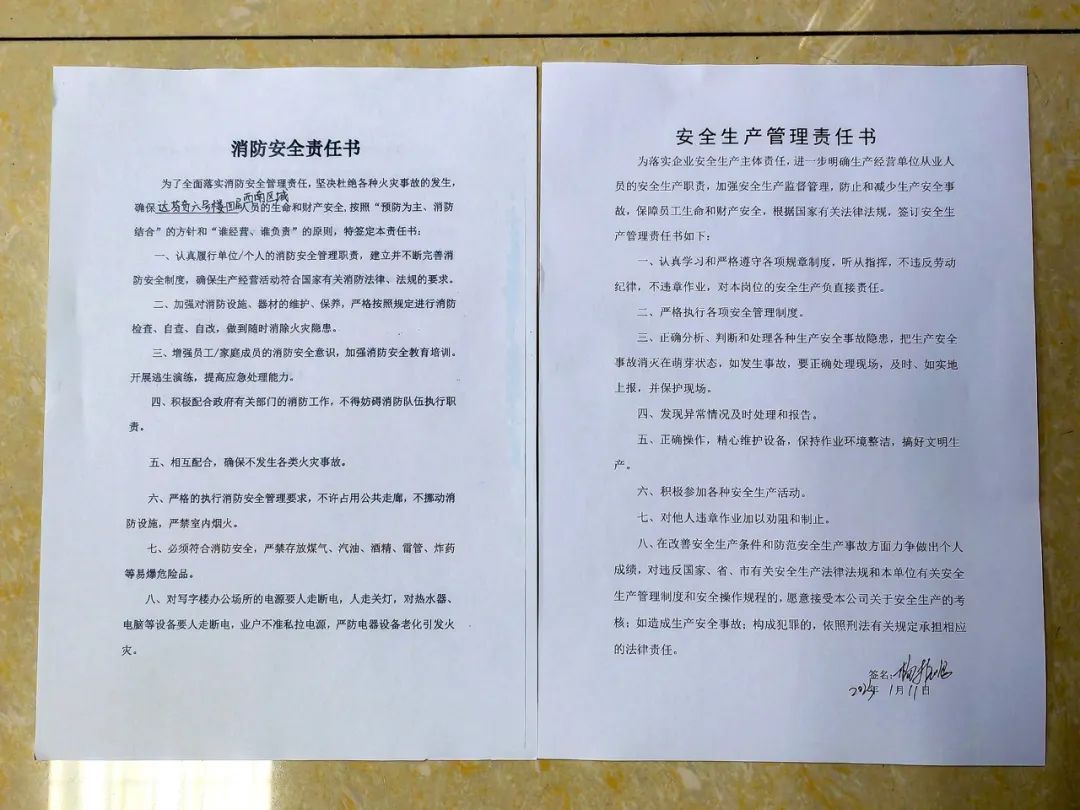 投资公司按照“一岗双责、齐抓共管”的职责分工,完善建立事故应急救援、突发事件应急、事故倒查、双重预防机制等安全生产制度,建立领导小组,把责任分级,量化到岗、细化到人。公司全员自觉签订安全生产责任书,组织所有承租户签订消防安全责任书,主动认领安全责任,把安全生产工作目标任务层层分解,形成了“横向到边、纵向到底、责任到人、不留死角”的安全工作网络格局。