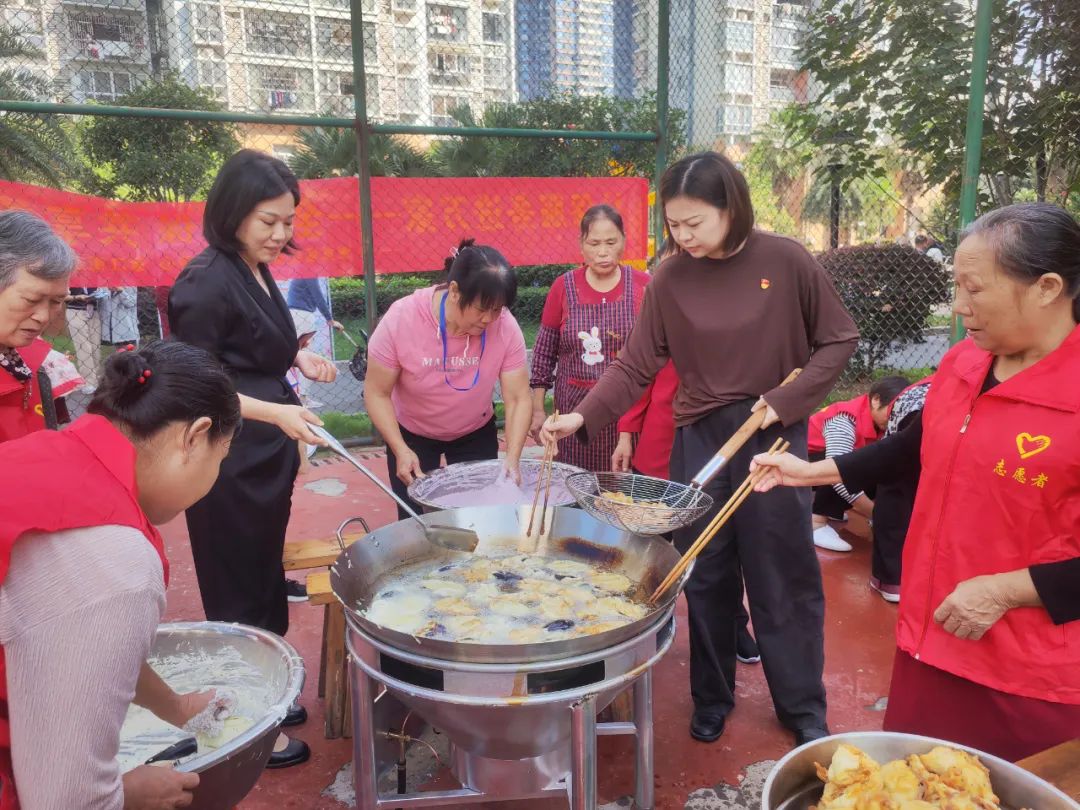 活动现场,志愿者们携手为小区老人共同制作赣南客家传统美食米果和擂茶,组织眼科医院为老人们健康义诊,与老人们话家常、问冷暖,听老人们讲述家里孝亲敬老的故事,了解他们有什么需要解决的问题,向老人们致以节日的问候和祝福,祝他们生活愉快,身体健康。志愿者的到来,让平日里安静祥和的小区一下子热闹起来,让老人们感受到社会的关爱。