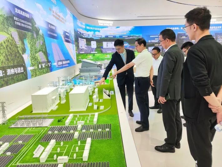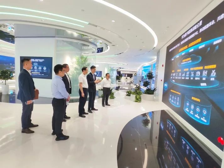 在华为数字能源安托山总部基地,杨晓斌一行参观了爱迪生展厅,公司负责人对企业发展历史、战略全景进行了详细介绍,展现了光伏、储能及数据中心业务的创新亮点,并结合重点工程项目和应用案例进行专门讲解。