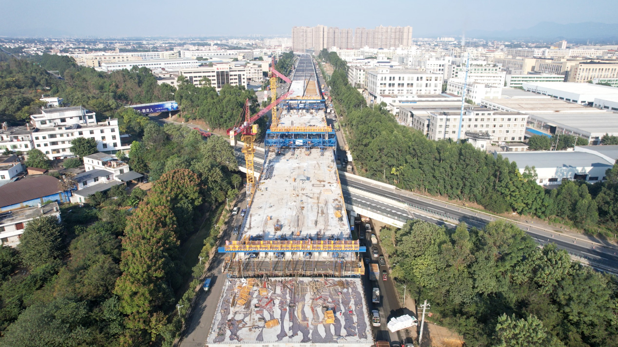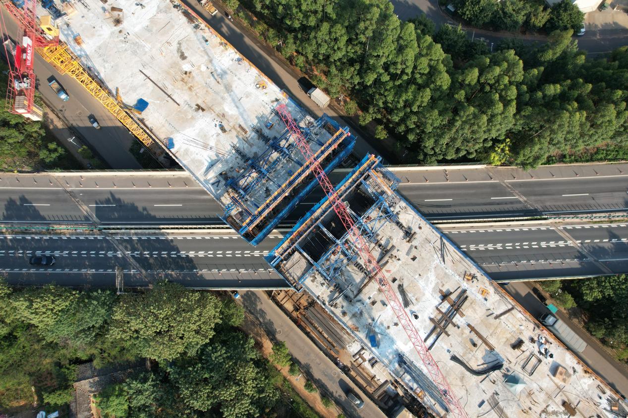 赣南大道快速路(康东大桥至创胜路东侧段)项目预计12月15日上跨大广高速连续梁段全部合拢