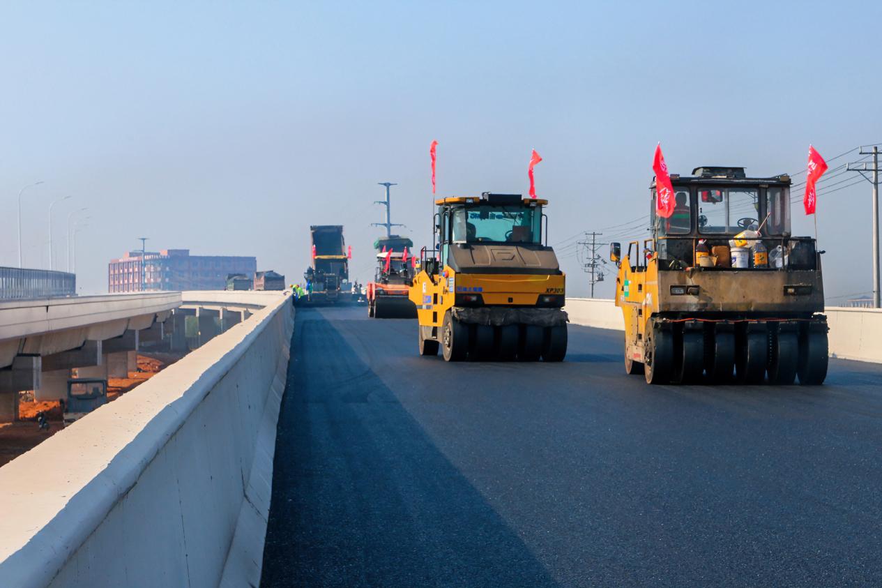 主线高架沥青路面摊铺完工
