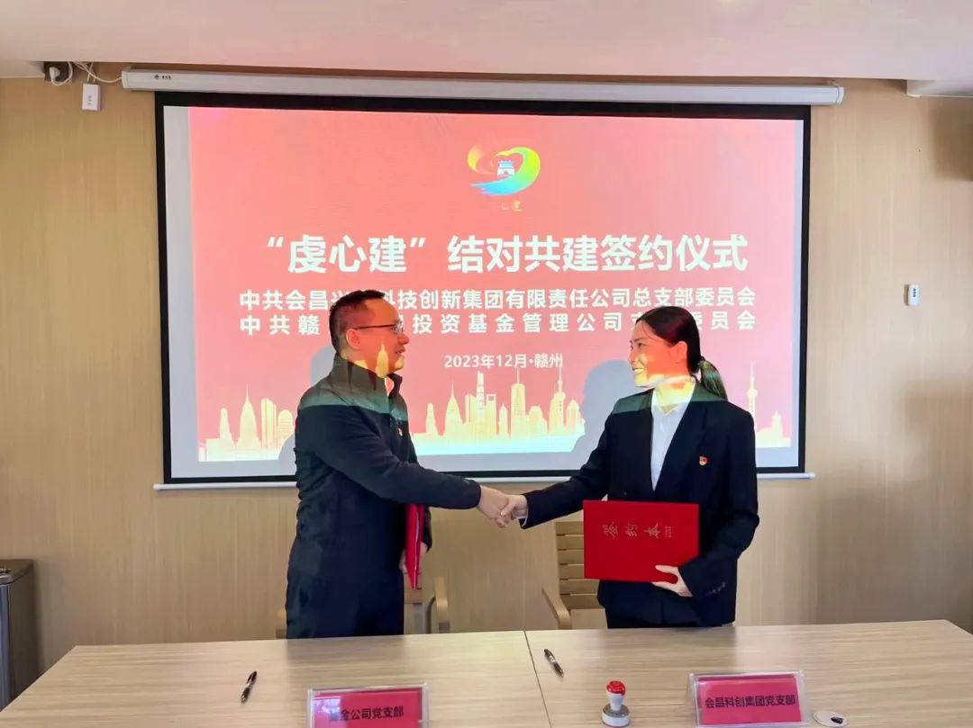 为进一步深化“虔心建”结对共建工作实效,基金公司与会昌县科创集团党总支举行了“虔心建”结对共建仪式,并签署“虔心建”结对共建协议。双方约定,将本着共享资源、优势互补、协力攻关、共同提高的双赢原则,聚焦组织建设互促、基层党员互动、党建载体互用等内容积极探索党建工作新路径,不断扩大党建联建成果,以高质量党建工作水平引领国企高质量发展。