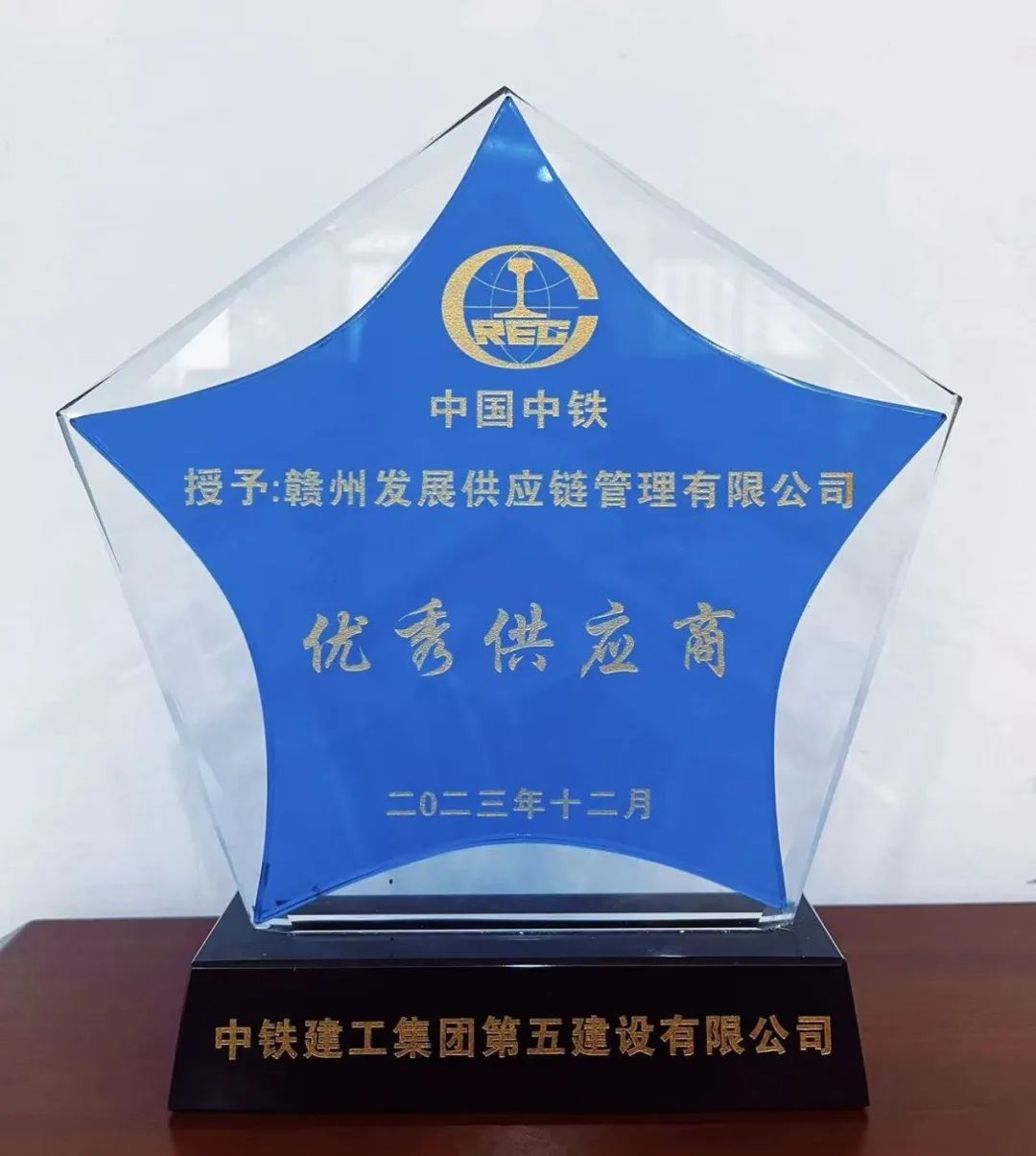 赣州发展供应链公司获评中铁建工集团第五建设公司“年度最佳供应商”荣誉称号