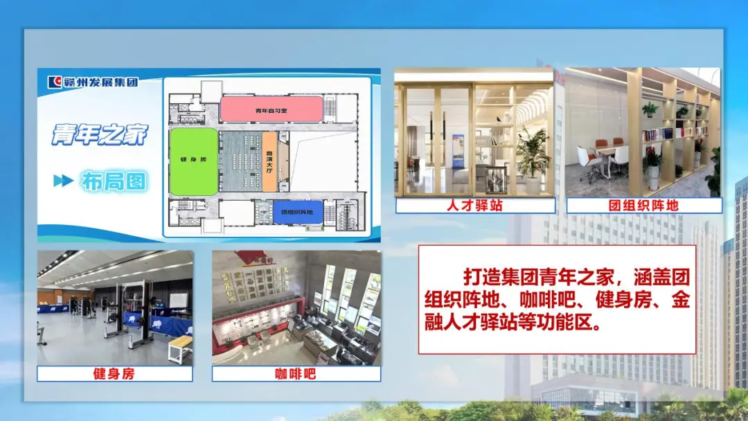 集团青年职工在加快“五区一体化”快速路项目建设、推动全市锂和萤石资源整合、运营产业基金助力我市产业转型升级等重点工作中争先创优、建功立业。积极履行全国青年发展型城市建设试点单位职责,将青年发展型城市建设工作要求纳入党委工作要点,协调相关单位部门在总规模5亿元的赣州市人才创新创业基金中预留10%的基金份额优先支持研发团队带头人年龄在45周岁及以下的青年人才创业项目,并征求团市委等单位意见建议,助力赣州市通过全国青年发展型城市建设试点中期评估,有效解决青年创业人才“有智无资”问题。成立集团青年先锋队、青年突击队,积极开展社区志愿服务、关爱留守儿童、慰问孤寡老人、无偿献血、义务植树等志愿服务活动。有效激发了青年职工青春正能量。打造集团青年之家,涵盖团组织阵地、咖啡吧、健身房、金融人才驿站等功能区,有效拴牢青年人才“纽带”,搭建青年交流“桥梁”。